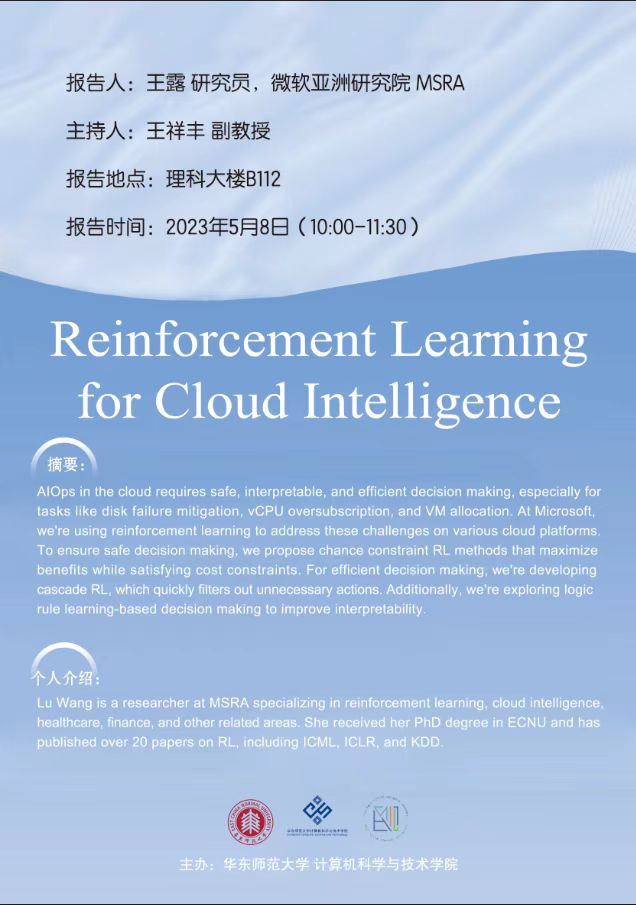报告题目:Reinforcement Learning for Cloud Intelligence
