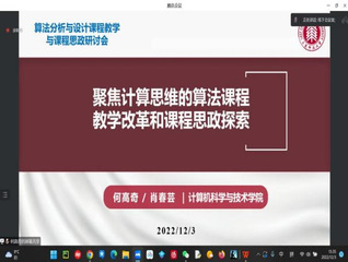 何高奇副教授在分享中强调,课程建设要做到知识传授、能力培养和价值引领的有机统一。在知识传授方面,以计算思维为导向,完善教学能容设计;在能力培养方面,开展习题、OJ训练和课题专项等多元课程训练;在价值引领方面,挖掘计算机科学史实,增强学生对算法的了解与兴趣,引导学生进行科技创新。