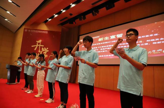 随后,杨紫荆等6名新生代表带领全体新生宣誓,认真学习并严格遵守《计算机学院学生学术规范承诺书》, 乐学善思,修身立德。做新时代有为青年,为民族复兴奋斗。