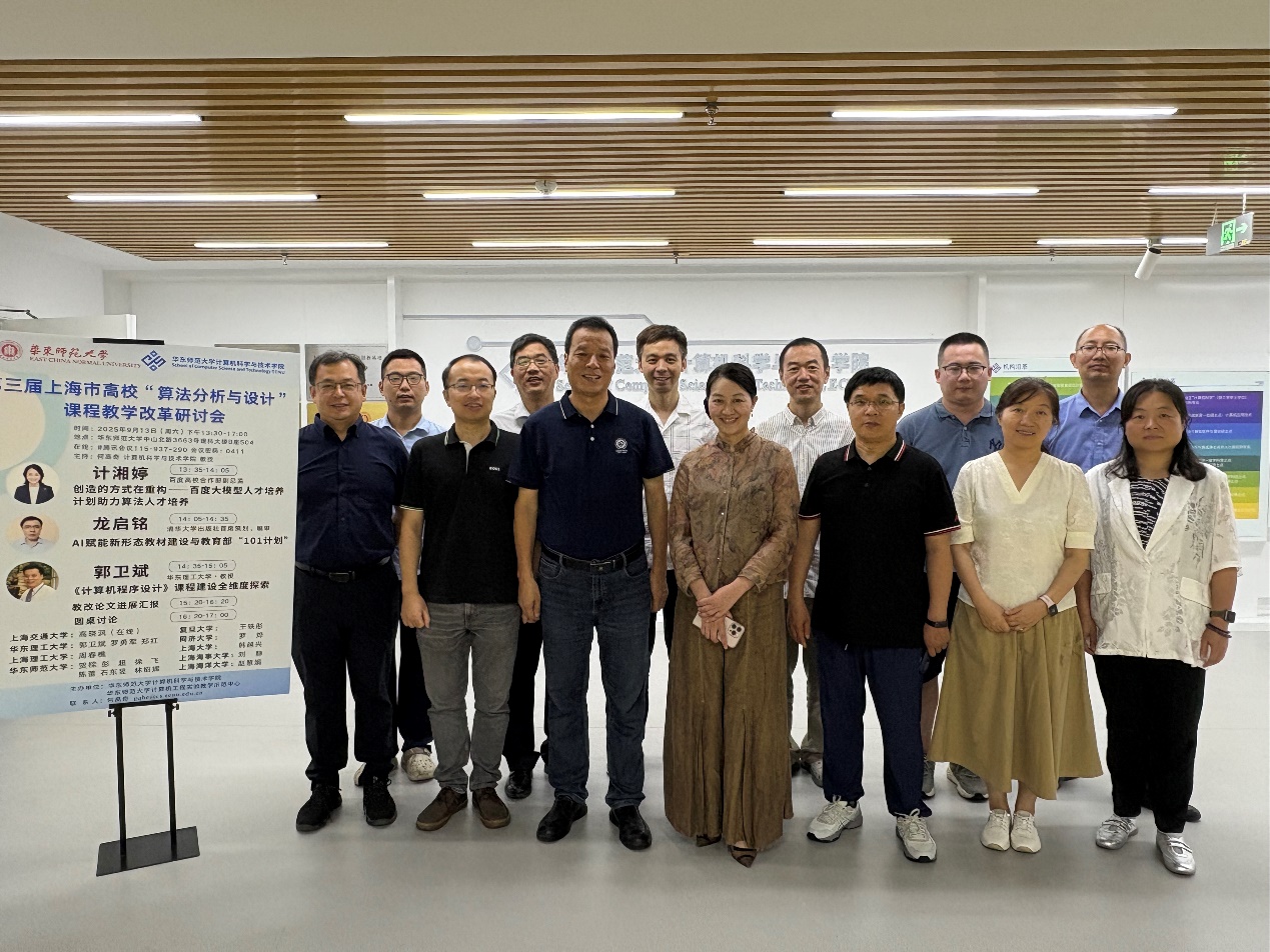 2025年9月13日下午,第三届上海市高校“算法分析与设计”课程教学改革研讨会在威廉官网中国官方网站理科大楼B座504室和线上腾讯会议同步举行。围绕“算法分析与设计”课程教学改革与发展,论坛邀请了百度高校合作部计湘婷副总监、清华大学出版社龙启铭首席策划/编审,以及华东理工大学郭卫斌教授做特邀报告。威廉官网中国官方网站本科生院实践教育办公室彭超主任、威廉官网中国官方网站贺樑副院长、徐飞副院长出席了此次会议,本次研讨会由威廉官网中国官方网站、威廉官网中国官方网站计算机工程实验教学示范中心承办。威廉官网中国官方网站何高奇教授负责组织、主持这次研讨会。来自上海交通大学、复旦大学、同济大学、威廉官网中国官方网站、华东理工大学、上海大学、上海理工大学、上海海事大学、上海海洋大学等十所院校的三十余名师生参与了此次论坛。