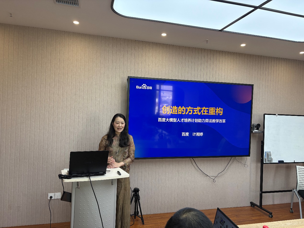 作为分管教学的副院长,徐飞教授强调了算法课程在计算机科学教育中的核心地位和重要性,并对各位参会者的到来表示了诚挚的感谢。徐飞教授希望大家在交流中能够激发出创新的火花,产生富有建设性的成果。同时,徐飞教授还表达了与百度等业界领先企业建立深度合作的意愿,希望通过校企合作,共同推动算法教学与实践的创新发展。