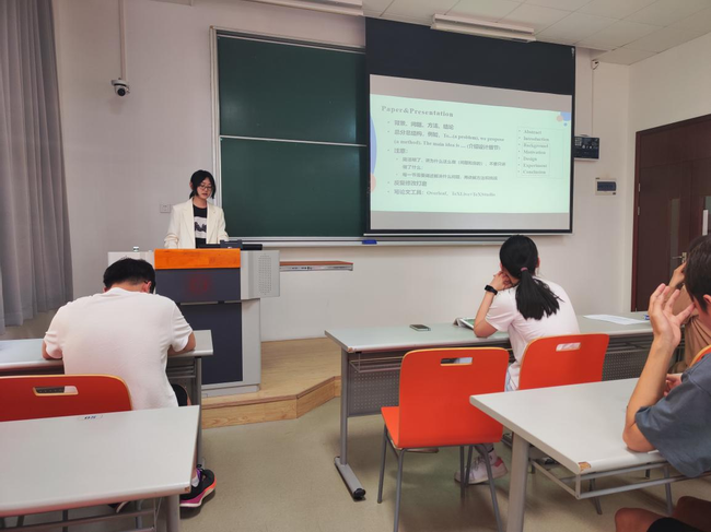 随后,博士研究生第一党支部优秀毕业生吕熠娜分享学术研究经验。她依次从研究方向、问题、设计、写论文等方面详细介绍如何发论文,并依据自身经验给出具体方法和工具。同时指出参加学术会议的重要性以及如何参加学术会议。强调要提前为下一阶段做准备,博后、高校还是企业?