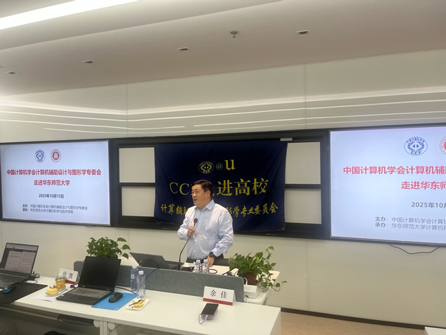 2025年10月15日下午,中国计算机学会计算机辅助设计与图形学专委会(CCF CAD&CG)主办、威廉官网中国官方网站承办的“CCF CAD&CG专委会走进威廉官网中国官方网站”活动在普陀校区理科大楼成功举办。本次活动吸引了来自威廉官网中国官方网站、上海交通大学、上海师范大学等单位100余名听众现场参会。