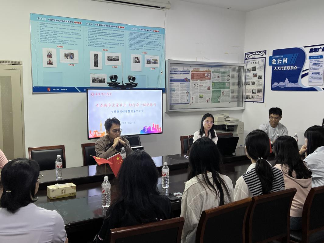 研学旅程的最后一站,大家来到了青浦区金云村村委会,和威廉官网中国官方网站选调生校友鲁梦洁、复旦大学选调生周晓萌开展了一场朋辈交流会。两位学长分享了他们在平日里在基层的工作内容与生活细节,包括与村民们的沟通交流、体察民情、改善民生。随后,两位学长也围绕备考经验、驻村心得等进行深入探讨,为大家提供了自己的经验和建议,解答了大家对于选调生考试的诸多疑问。