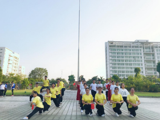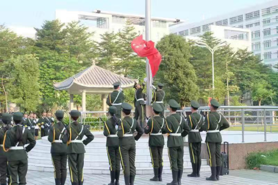 清晨,迎着第一缕朝阳出发,手中挥舞着鲜艳的国旗,宛如流动的红色海洋...... 9月30日7:10,第一临床医学院升国旗观礼活动正在隆重进行中。同学们整齐划一地站立在各自的方阵中,手里都拿着一面鲜红的小国旗。迎着晨曦,国旗护卫队的升旗手们护卫着鲜艳的五星红旗入场,他们着装整齐、昂首挺胸、步伐矫健。伴随着《义勇军进行曲》的响起,五星红旗在微风中冉冉升起,注目着五星红旗,同学们的自豪之情油然而生,爱国之情溢于言表。在庄严的国旗下,2019级的学生代表朗诵《中华颂》,字字铿锵,激荡人心。朗诵完毕,院武术队在期待中登场,为大家展示了精心准备的武术表演,也为祖国献上了充满中国元素的生日礼物,赢得现场掌声不断。最后,随着音乐响起,全场唱响《歌唱祖国》,从高空俯瞰,师生们挥舞着手里的小国旗,宛如一片流动的红色海洋,现场气氛也达到了最高潮,“用奋斗青春告白美丽祖国,祝祖国繁荣昌盛,国富民强!”所有的人,都在为新中国成立70周年表达自己由衷的祝贺,热情的歌声,传遍了校园,回荡在空中,久久不散……