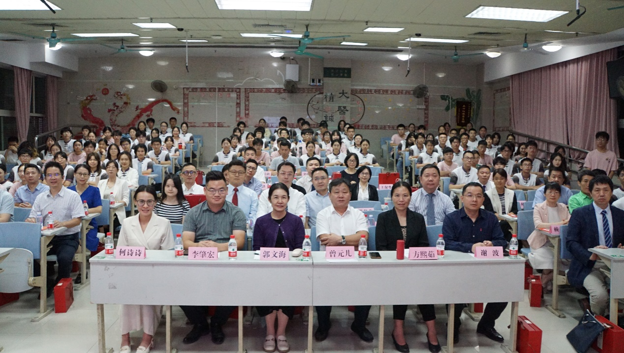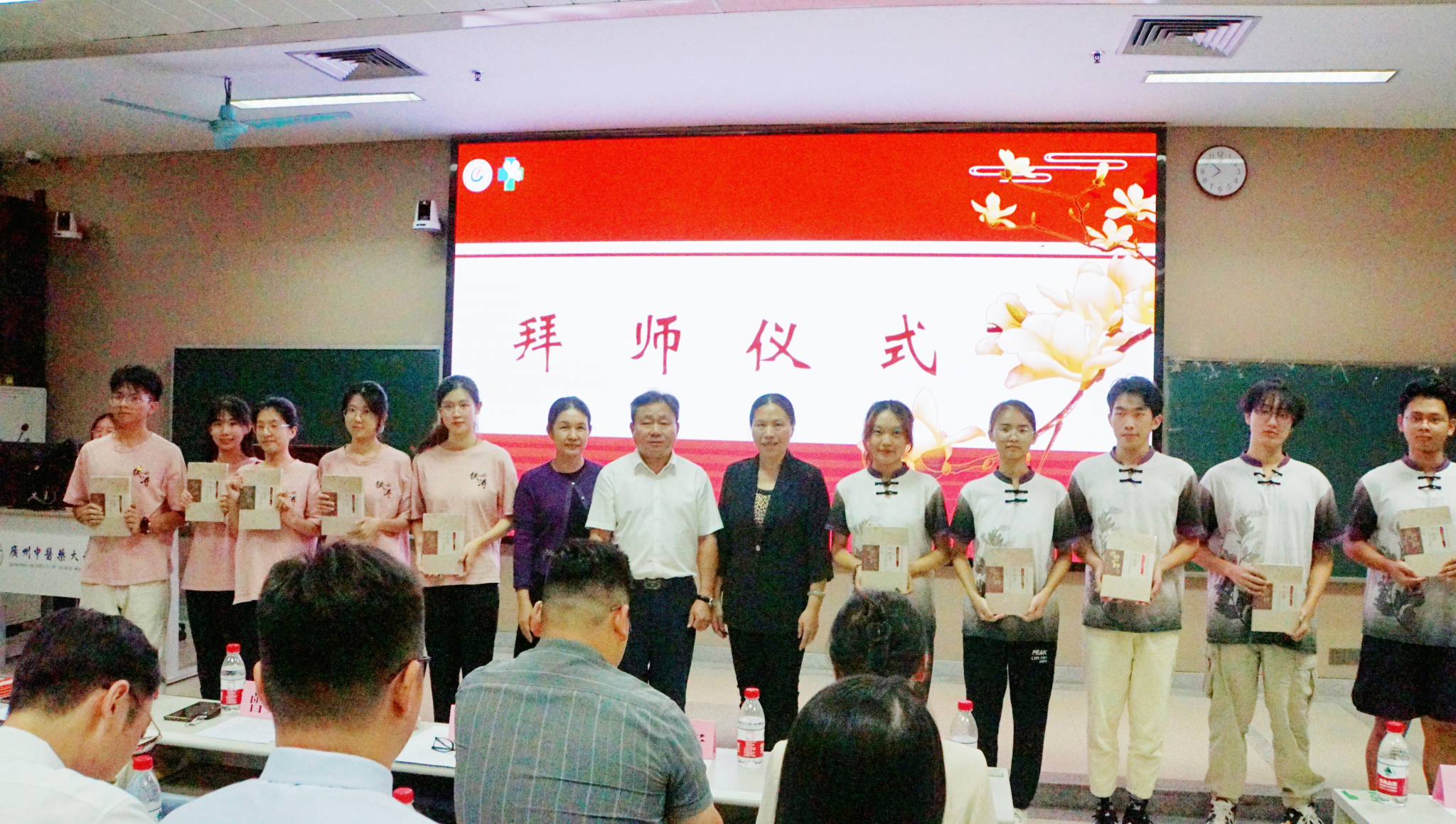 2023年10月16日晚,广州中医药大学第一临床医学院2022级中医学八九年制班、铁涛班拜师大会在大学城校区综合楼101教室举办。广州中医药大学教务处处长曾元儿、第一临床医学院党委副书记郭文海、教学处处长方熙茹、学工办副主任李肇宏、教学处老师以及学业导师35人、学生117人参加本次拜师大会。