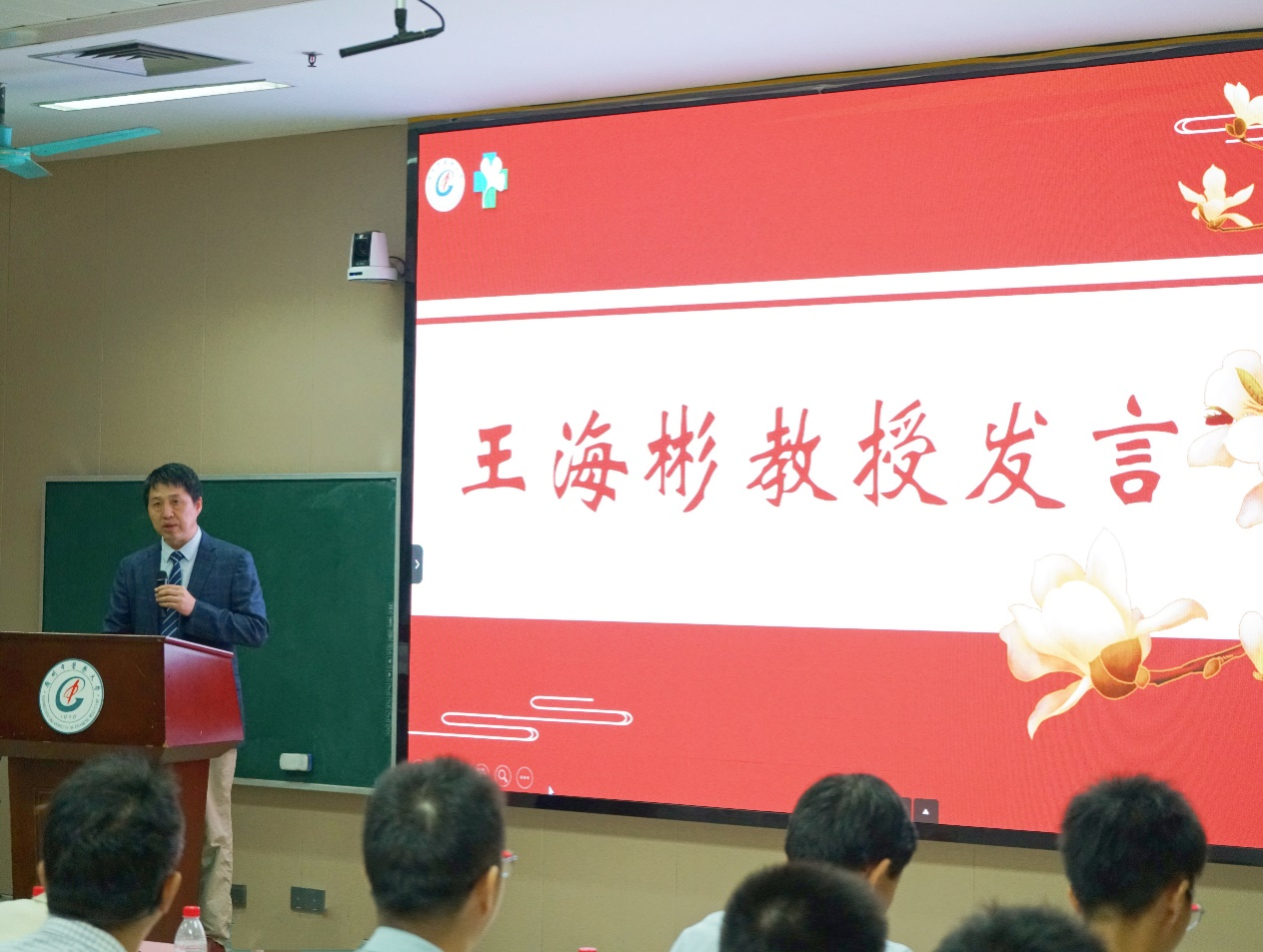 在齐声朗读之后,导师代表王海彬教授结合自身经验,从创新思维的培养、理想信念的坚定和中医经典与临床技能的学习三个方面分享了自己的见解,并向同学们提出了明大德重小节和多读书多临证的期待。