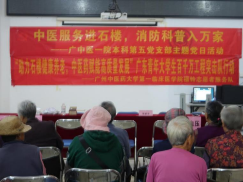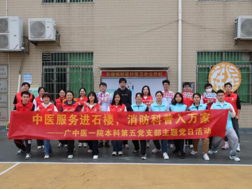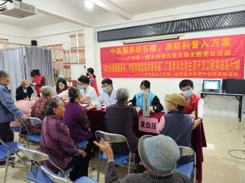 为深入学习贯彻习近平新时代中国特色社会主义思想,引领青年学生党员以实际行动践行“全心全意为人民服务”的根本宗旨,九九重阳节前夕,第一临床医学院教学党总支本科第五党支部携手本院“福铃”志愿者服务队于10月21日上午在番禺区石楼镇举办了“中医服务进石楼,消防科普入万家”志愿服务活动。本次活动也是“福铃”志愿者服务队加入广东青年大学生“百千万工程”突击队行动后开展的系列活动之一,活动受到了番禺石楼团委、番禺石楼消防队的大力支持。