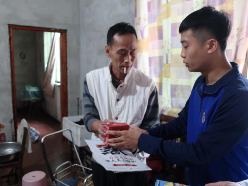 重阳佳节将近,志愿者们走进石楼镇6户贫困户进行慰问。每到一户,学生党员们都热情地与老人家交流谈心、关心他们的生活、健康状况。老人们看到这群青年学子胸前煜煜闪光的党徽,听到他们所学的中医学专业,纷纷竖起了大拇指,鼓励青年学子们要好好学习,未来为党和国家做出贡献;当老人们收到食用油、面等慰问品时,他们表示非常感谢自党组织、来自志愿者们的关怀与问候,让他们感受到重阳节浓厚的节日氛围与温暖。