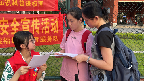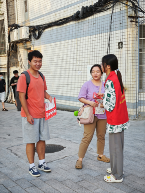 活动伊始,支部学生党员们积极向过路师生分发消防知识科普宣传单,力争将消防知识传递到更多人的手中。现场还放置了消防知识立牌,简单介绍了五种不同灭火器的适用情况,提高大家对灭火器选择重要性的认识。“消防知识要牢记,快来一起认识了解消防器材吧!”在学生党员们一声声的宣传下,越来越多的师生聚集到活动点,切身感受高压水枪灭火的帅气与威力,学习如何正确使用灭火器。