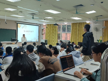 会议第一个环节,是受邀嘉宾的个人分享环节。2018级中医学五年制张驰名以现代中医成材研究初探为主题,从他认为的最重要的五个维度(实事求是、学以致用、远大理想、认可中医、包容其他一切知识技能)、增强中医的自信与兴趣的重要性、能够提高学习效率的工具、为何中医经典是根等四个方面分享了自己在临床与科研的学习经验,他建议同学们多阅读书籍,多重视临床,多重视科研。他生动地讲述了其在大学阶段的中医学习之路,同学们深受鼓舞。2022级中医学九年制的朱锴雨分享了他担任班级团支书与武术队队长、邓铁涛学术思想研究学习协会副会长的经历,阐释自己如何平衡好专业课和非专业课以及其他活动的做法,提供了假期寻找跟诊的医院或者诊所的具体流程与跟诊注意事项、方法、渠道等。两位师兄倾囊相授,都准备了饱含心意,“干货”满满的课件,而同学们伏阁受读。