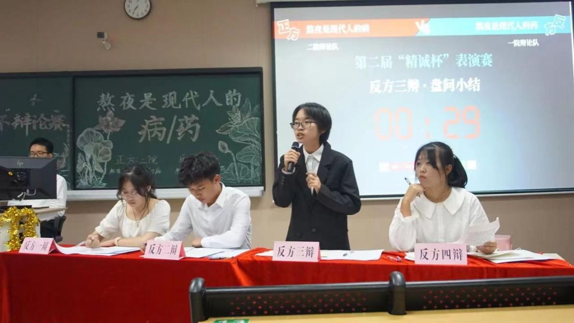 本届辩论赛以“青春思辩,论道精诚”为主题,旨在通过辩论的形式,激发同学们的思维能力和团队合作精神。辩论赛包含表演赛、学院初赛、半决赛和决赛四个阶段。在表演赛中,辩手们大显身手,运用高超的辩论技巧和深厚的理论基础,为我们呈现了一场精彩纷呈的辩论。随后,各班级代表队参与了初赛,他们用精彩的辩论征服了评委和观众,赢得了大家的热烈掌声。目前,辩论赛已进入半决赛阶段。这一阶段的比赛将更加激烈,选手们需要面对更具挑战性的辩题,需要用更加深入的思考和更加有力的言辞来阐述自己的观点。我们期待着他们在接下来的比赛中能够发挥出更高的水平。