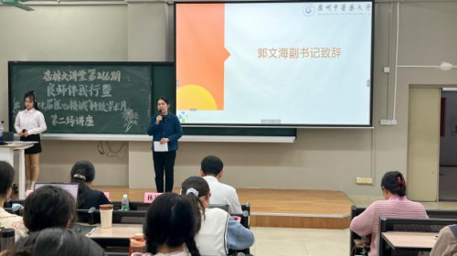 活动当晚,同学们提前来到课室就坐,现场座无虚席。主持人介绍了出席本次活动的嘉宾,同学们以热烈的掌声表示欢迎。随后,郭文海副书记致辞,她称赞现场同学们积极的学习态度,勉励一院学生会持续举办类似高水平讲座,营造学校浓厚的中医药学术氛围。