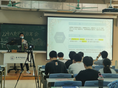 随后,蔡嘉铬师兄从“大二这一年怎么度过”、“经典需要怎么学习”、“诊断怎么精确”三个方面系统地向师弟师妹们进行现阶段的分享与解惑。在分享中,蔡师兄建议师弟师妹们做好学习规划与时间管理、同时应扎实学好中医与西医的课程,从临床中来到临床中去。最后师兄从大学生活方面分享,建议同学们应当劳逸结合,不负时光。两位师兄倾囊相助,言传身教,从学习出发,而同学们认真向师兄学习,发出自身的思考。