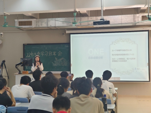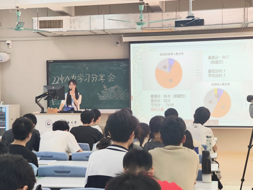 学委刘楷扬介绍了班级上一学期的成绩大致情况并对班级学情学风进行分析,在调研中总结本班对自己学情满意度高的同学的学习心得,并给出及时复习、坚信自己能解决困难和做好学习规划等三点建议。