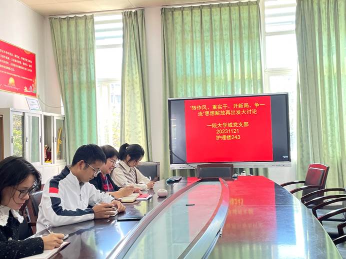 为更好结合实际开展学习讨论,支部书记传达了学校党委“转作风、重实干、开新局、争一流”解放思想再出发大讨论会议精神。重点强调了全面落实“1+5”作风建设总要求,立足学院发展中发现的问题及时解决,攻坚克难,解放思想,为学校“双一流”和高水平大学建设历史重任做出贡献。