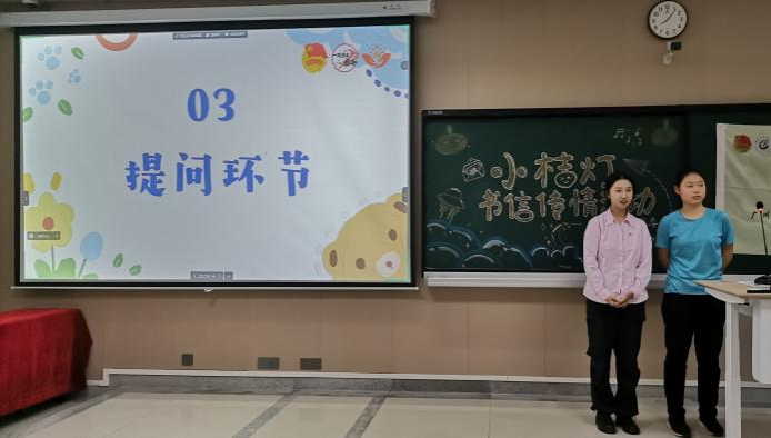 这次活动有幸邀请到第十一届小桔灯书信传情活动优秀志愿者李东雨同学,她结合自身与小朋友交流的经历体验,为大家分享了她宝贵的经验和一些有趣的经历与感想。她在经验分享中,强调了志愿者要真诚与小朋友交流,用心关怀小朋友。在接下来的游戏互动环节——剧情回忆杀中,志愿者们根据动画片片段积极抢答剧中台词,回答出正确答案,现场氛围更加活跃。游戏结束后,主持人、活动负责人曾子天和优秀志愿者李东雨同学对志愿者们的疑惑进行了一一解答。所有活动环节结束后,志愿者们在“小桔灯”祝福板上留言。第十二届“小桔灯”书信传情活动启动仪式暨笔友培训交流会也在志愿者们写下的一撇一捺中圆满结束。
