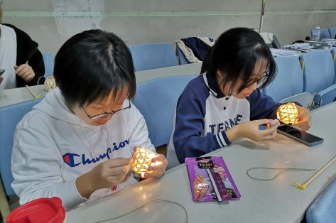 在简要的开场之后,志愿者们用手中的材料制作出一盏盏小灯,同一院学生团委副书记卢哲涵与第十二届小桔灯书信传情活动负责人曾子天一起进行了点灯仪式,“小桔灯”书信之旅正式开启。紧接着,活动负责人曾子天同学为大家详细介绍了“小桔灯”书信传情活动的具体内容和流程,并重点强调了写信的注意事项,还分享了在写信过程中如何帮助小朋友们解决问题。在大家了解小桔灯具体活动之后,我们一同进入了轻松一刻——猜歌词小游戏。志愿者们一起重温童年儿歌,一起回忆童年动画,将时空回溯到天真烂漫的童年。