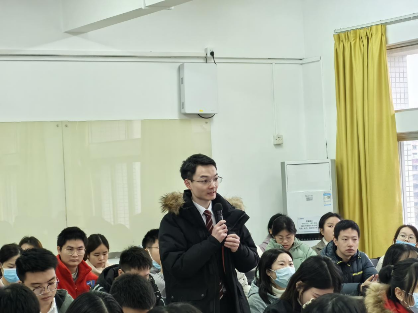 广州中医药大学第一附属医院重庆医院(重庆市北碚区中医院)党委副书记、执行院长王雄文教授针对国家区域医疗中心建设项目情况向毕业生进行专题介绍,鼓励同学们积极响应国家战略投身重庆就业,将自身的本领挥洒在川渝的热土,为重庆中医药事业贡献自己一份力量。