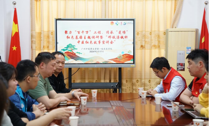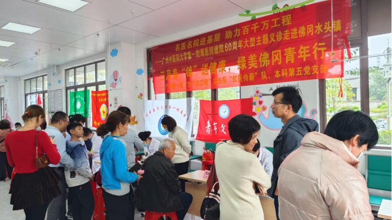 为贯彻落实习近平新时代中国特色社会主义思想,全面推进健康中国建设,推动优质医疗资源下沉,助力健康扶贫和乡村振兴,全面落实广东省委关于全面实施“百千万工程”和“绿美广东生态建设”的决策部署,2024年3月17日,广州中医药大学第一附属医院(第一临床医学院)组织名医专家、青年医护和广东青年“百千万工程”突击队“红医传薪”队学生志愿者共37人,深入清远佛冈地区,在水头镇开展以“名医名院进基层 助力百千万工程”为主题的学雷锋志愿服务月活动暨建院60周年大型主题义诊,同时在汤塘镇开展以“青春有为红医行,绿美佛冈传薪火”为主题的红色研学暨调研座谈,用实际行动传承红色基因,为基层民众送健康递温暖,共建健康绿美广东。