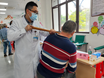 义诊还未开始,村民们早已来到现场等候,有的扶着老人,有的带着孩子,大家脸上都写满了期待和信任。在导诊志愿者的引导下,村民们都找到了适合就诊的专科医生。面对就诊群众的病情描述,义诊专家们耐心地倾听,详细地解答疑惑,还为患者细致地查体,并提供针对性的治疗建议等。骨伤中心赵主任仔细询问吴女士的病史,并耐心复查其腿部病情;肾病科陈主任为王阿姨耐心指导病后的用药和护理;骨科余医生为饱受腰痛“旧疾”困扰的张阿伯做起了中医特色“点棍”疗法;眼科刘医生指导近视的小学生做起了眼睛穴位按摩;针灸科黄医生也现场为咽痛患者进行了中医“火”针治疗……义诊现场,急诊科叶医生还为群众开展急救知识科普,手把手教会群众急救技能;而医院肾病科的吴护士则开展起“呵护肾脏,合理饮食”的公益讲座。