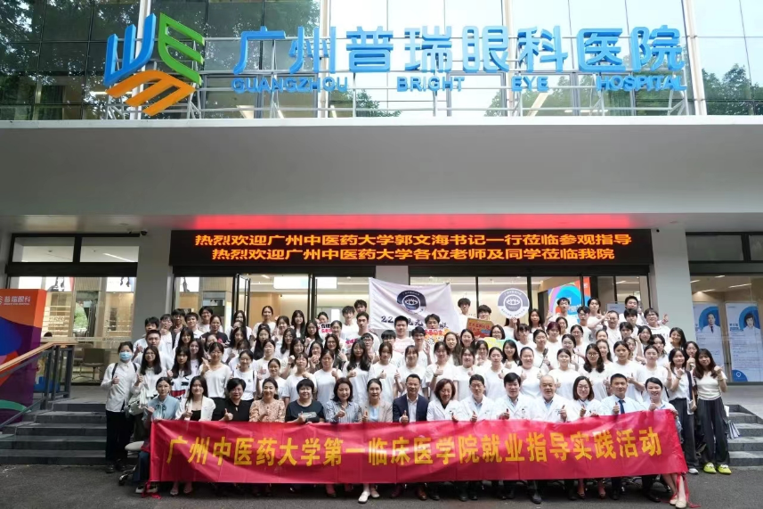 2024年4月19日,为推进落实就业工作“一把手”工程,拓展就业资源,提升毕业生就业质量,应广州普瑞眼科医院邀请,广州中医药大学第一附属医院(第一临床医学院)党委副书记郭文海带领学院教育教学部、眼科教研室和眼视光专业辅导员,以及我院2021级和2022级眼视光班专业的同学参观了广州普瑞眼科医院,开展“访企拓岗”以及就业实践活动。