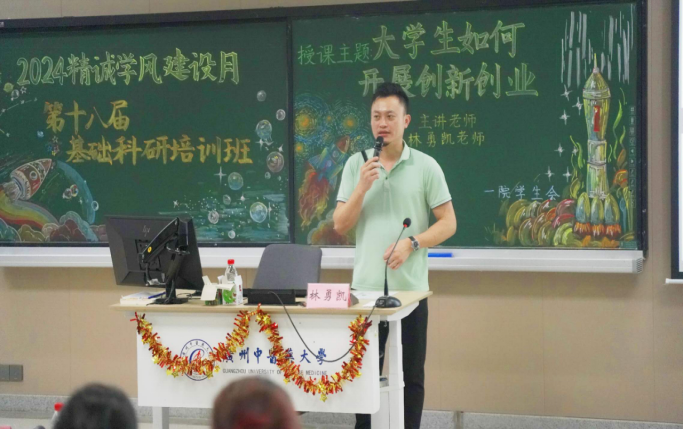 【一院讯】2024年4月22日星期一19:00,由广州中医药大学第一临床医学院主办的“精诚学风建设月”之第十八届“基础科研培训班”第三次授课于大学城校区综合楼102顺利举行。本次活动有幸邀请了广州中医药大学第一附属医院主治医师林勇凯老师开讲,第一临床医学院学工办陈小波老师作为嘉宾莅临现场。