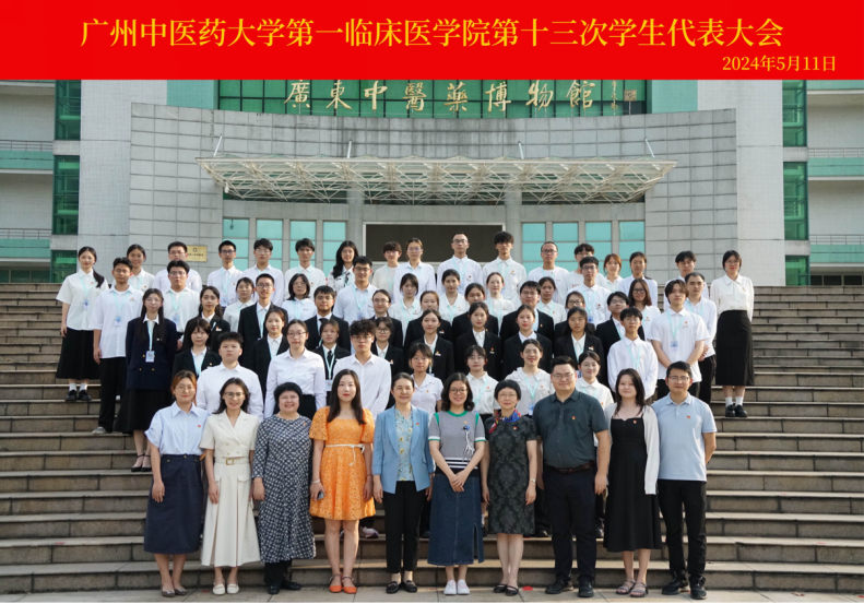 【一院讯】2024年5月11日下午,广州中医药大学第一临床医学院第十三次学生代表大会在我校大学城校区综合楼103正式召开。学校团委副书记武夏林,第一临床医学院党委副书记郭文海,教学党总支书记陈雁,学工办副主任李肇宏,学生团委书记池思晓,学工办刘文红、黄婷、何诗诗、南海伦、陈小波等领导老师,校学生会、各兄弟学院学生会嘉宾,以及我院全体学生代表共同出席了本次大会。