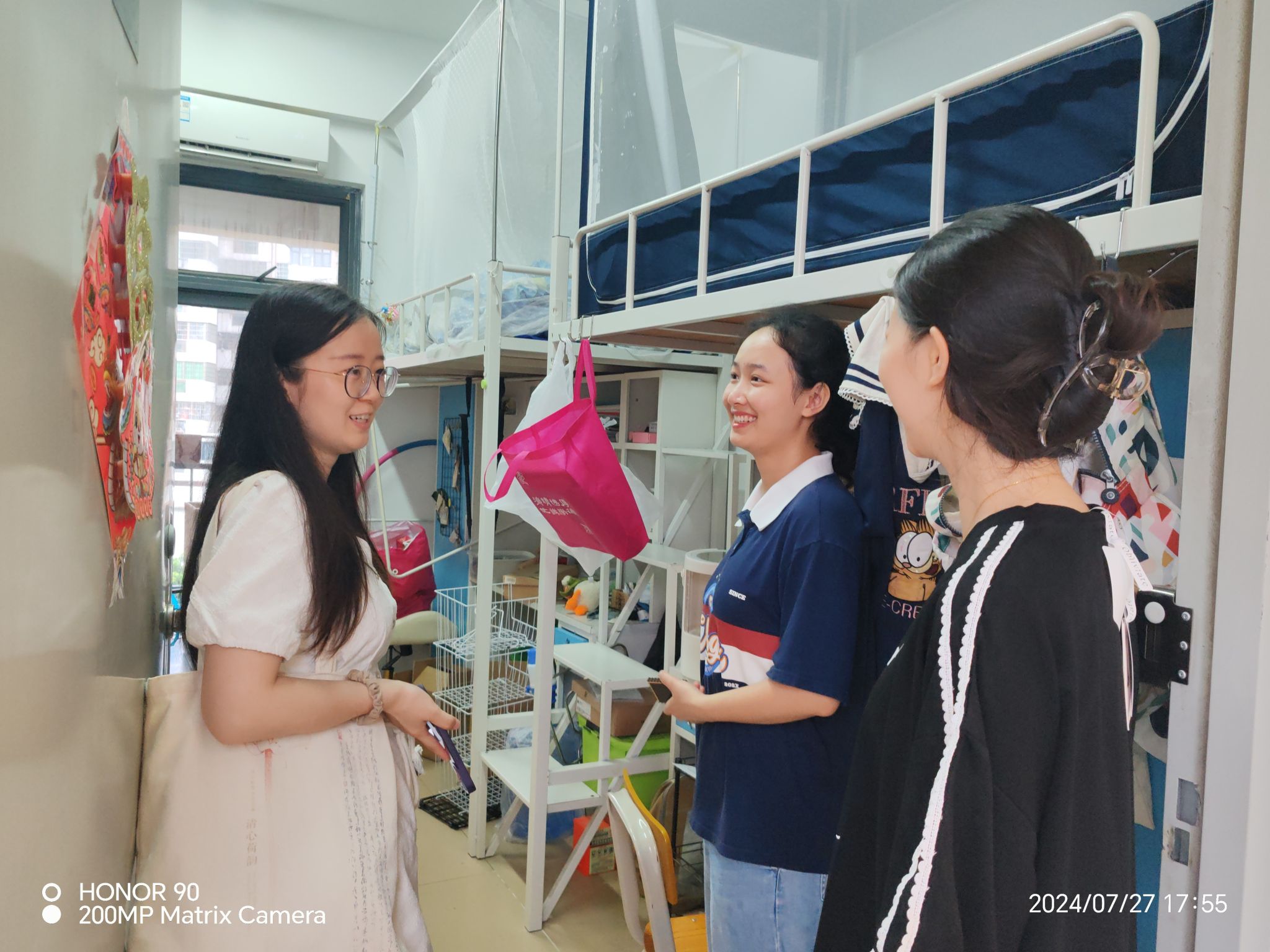 报到结束后,新生班主任刘思琳老师、刘方乐老师,学工办辅导员陈小波、彭力阳老师走访新生宿舍,与同学们亲切交谈,及时了解学生需求,认真嘱咐宿舍用水用电安全、交通安全等事项,并代表学校向新生们表示热烈的欢迎和诚挚的祝福。