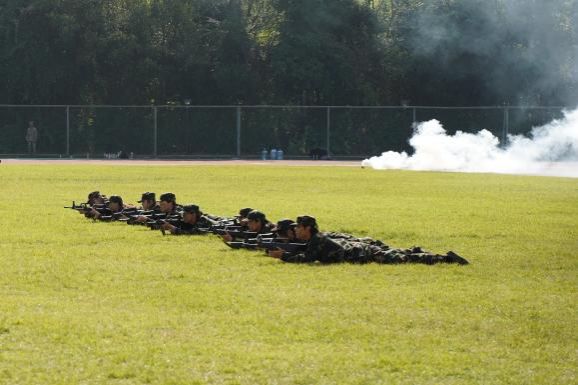 随着军号的吹响,伴随豪迈雄壮的音乐节奏,有我院学子参与的军体拳、匕首操及拳术方阵震撼登场。推击弹踢,刚猛有力,如猛虎出山;上挑下切,精准果断,似利刃破风;疾步风行,迅如闪电,展青春风采;拳出如锤,势如破竹,显英雄本色。青春与迷彩邂逅,阳光与汗水交织,他们将爱国爱校的使命铭刻于心,把为国为家的初心力践于行。坚毅的眼神中,透露出面对强敌宁为玉碎的浩气和面对困难乘风破浪的锐气。他们用汗水与拼搏,书写着青春的壮丽篇章。