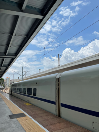 21精诚班张思祺这样写道:小时候,回老家看望爷爷奶奶,绿皮火车是我记忆中的慢时光。夜幕降临,车厢里的灯光昏黄,旅客们的交谈声和列车的哐当声交织在一起。那时候,一晚上的颠簸是通往家乡的唯一方式。如今,高铁的快速发展让回家的路变得快捷舒适。不再需要整夜的等待,几个小时就能抵达。窗外的风景飞速后退,仿佛时间也跟着加快了脚步。我与祖国共成长,感受到了铁路发展带来的便捷,也见证了中国速度的时代变迁。