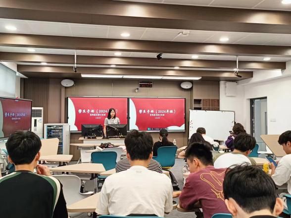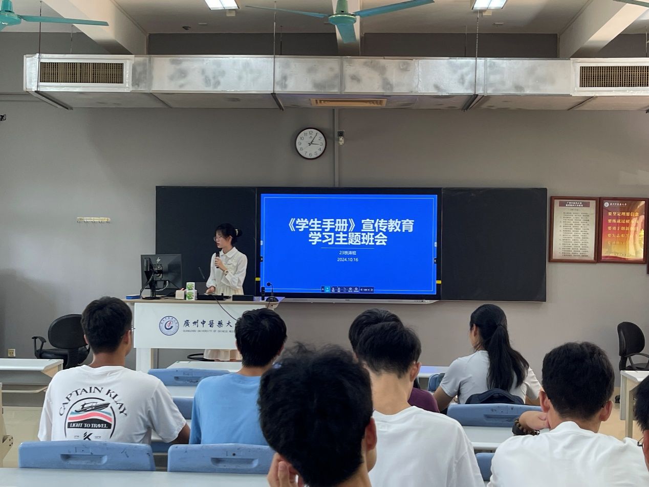 宣传教育活动采取了多元化的实施策略。在课堂上,何诗诗老师以“大学生的学习与生活”为主题,引领同学们踏上了一段知识之旅。她从学校的历史沿革、校训精神、校徽寓意讲起,不仅重温了广中医的辉煌历程,还细致解读了《学生手册》的核心内容,为同学们勾勒出一幅清晰的大学生活蓝图,使他们对个人目标的设定有了更加精准的定位。随后,在各班级班委的组织下,一场场以《学生手册》为主题的宣讲活动如火如荼地展开,同学们积极参与,共同研读了新版的《学生手册》,加深了对学校规章制度的理解与认同,为构建和谐的校园生活奠定了基石。