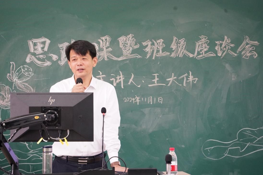2024年11月1日,广州中医药大学第一临床医学院副院长王大伟在综教楼815为2022级中医学八九年制的同学带来一场别开生面的思政课暨班级交流会,解答同学们学业生涯的疑惑,帮助树立生涯发展的信心,激发对中医药事业的热情。