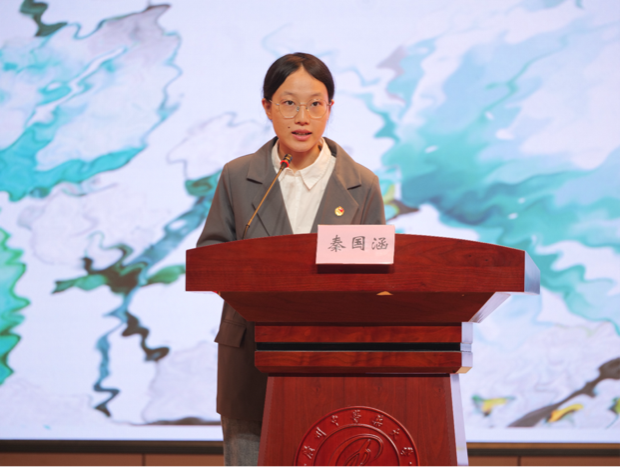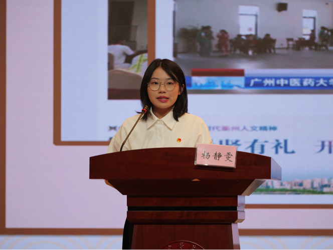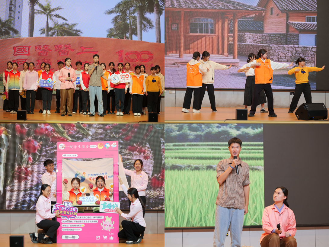 首先,一院学生团委实践部部长杨静雯同学进行年度社会实践总结汇报。她从“学思践悟强信念”“青春聚力促成长”“红色初心砺前行”“绘就绿美新画卷”“岐黄术暖惠万民”“百年岐黄逐一流”六个方面,对本年度一院社会实践活动进行全面回顾与深入总结,描绘出一院学子深入基层、服务群众的生动画面, 彰显我院学子服务社会、自觉担当时代责任的青春风采!