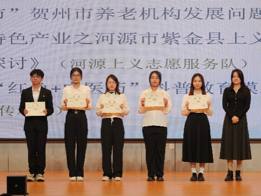 此外,林梓烨同学与黄韵婷同学作为邓铁涛铁杆中医红色传承队与三色谨三下乡实践队队伍代表上台分享。林梓烨同学结合自身经历与切实感悟,详细阐述了“三下乡”各阶段规划要点;黄韵婷同学从队伍负责人角度分享了组织“三下乡”活动的经验,同时为打算以队员身份参与的同学提供了活动参与途径与自我发展技能的建议。他们分享的 “夏乡路”与“夏乡情”,有助于激励我院更多学子投身志愿服务,弘扬志愿精神。