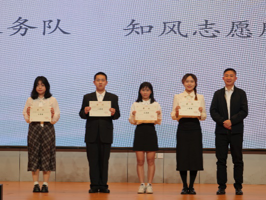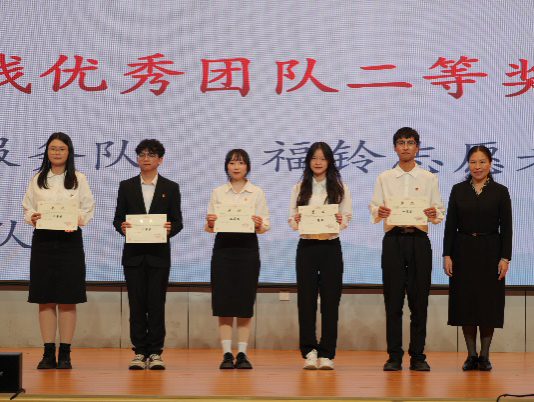 一院教育教学部副部长周峰老师为“暑期社会实践优秀团队”颁奖