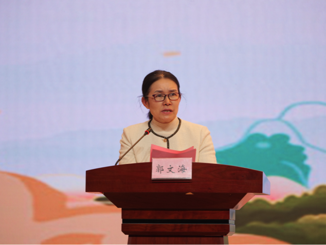 接着,一院党委副书记郭文海老师为本次大会作总结讲话。她首先对出席本次大会的领导老师表示感谢,接着充分肯定了我院学子积极响应习近平总书记的号召,深入基层,服务社会,以实际行动传承中医药文化。她还从以下三个方面为学院社会实践工作的发展建设作出了指示:一是传承精华,在簇新时代里强化育人目标;二是投身实践,在社会服务中绽放青春光芒;三是心怀国家,在时代浪潮中肩负中医使命,成为中医将才之士!