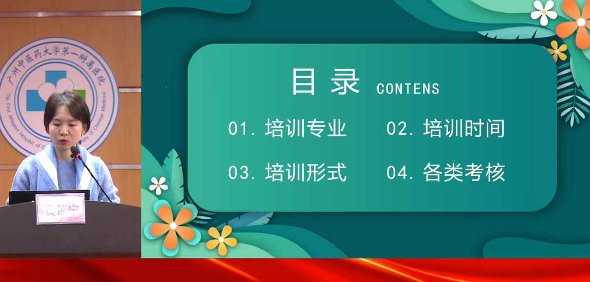 在各院领导介绍招聘计划、医院人才规划和未来发展之后,由规培办黄依宁老师就中医医师规范化培训形式及内容介绍进行了讲解,她主要从培训专业、培训时间、培训形式以及各类考核等四个方面进行了全面介绍,让学员们对规范化培训有了更清晰的认识和了解。