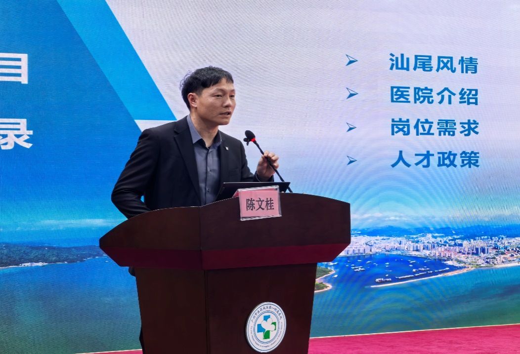 深汕医院副院长陈文桂首先以汕尾的独特风情为引子,生动介绍了医院概括。而后,他详细阐述了深汕医院的岗位需求情况,以及医院为吸引和留住人才所制定的一系列优惠政策,为求职者提供了宝贵的就业信息和方向。