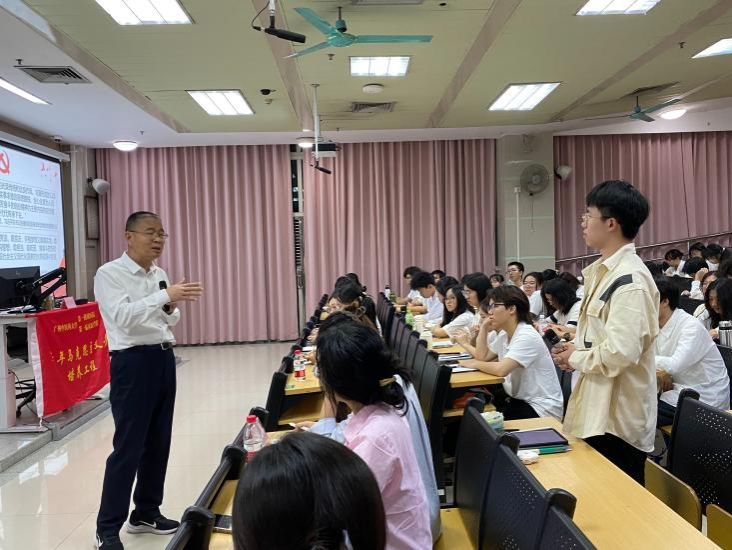 交流互动,思维碰撞。青马学员在交流环节踊跃提问,邝卫红幽默、耐心地一一解答,现场氛围活跃。当学员谈及平衡学习、工作、娱乐的挑战性问题,邝卫红分享了自己的心路历程。他坦言在大学期间也曾对深奥的中医理论感到迷茫与困惑,但亲身参与到中医的实践工作中后,他逐渐明晰中医的独特魅力和显著疗效,这点燃了他对中医的热情,并坚定深耕中医领域的决心与信心。他鼓励青马学员要保持学习中医的毅力,注重中西医结合,养成合理安排时间、注重提高效率、保持健康的生活习惯,做到生活工作两不误。对于班级凝聚力和党史学习程序化片面化的问题,邝卫红认为团支部应通过解决实际问题、寻找共性来增强团员的认同感和归属感,提升支部凝聚力。他强调,因成长轨迹不同,看待问题必然会存在差异,但任何组织和个人都需明确自身定位,相互借鉴成长,增强自信。