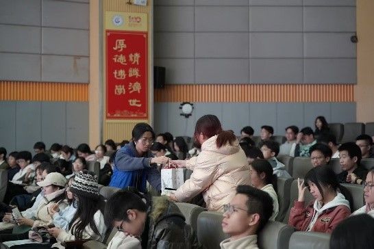 访谈结束后,主持人邀请现场的观众对在场嘉宾进行提问,并在答疑解惑后进行幸运观众抽奖。在大家的期待中,李赛美教授、李梓媛同学、黄琪惠同学宣布获奖同学名单。宣布获奖名单之后,学生代表上台献花致谢,在热烈的掌声中,本届精英论坛活动完美谢幕。