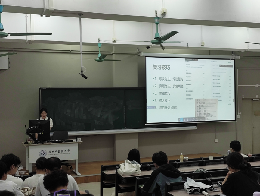 为助力2026届考研学子顺利考上心仪学府,实现升学梦想,“助学筑梦”发展型资助育人辅导员工作室以《研途指南,医研为定》为主题于2025年4月18日在三元里校区举办了考研经验分享会,此次会议由南海伦老师主持,主要对象是2026届毕业班的同学们。3位2025届成功考研上岸的师兄师姐亲临现场,分享独家备考策略、择校技巧与心态管理秘籍,帮助同学们科学规划研途,医研为定!