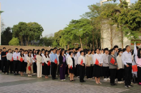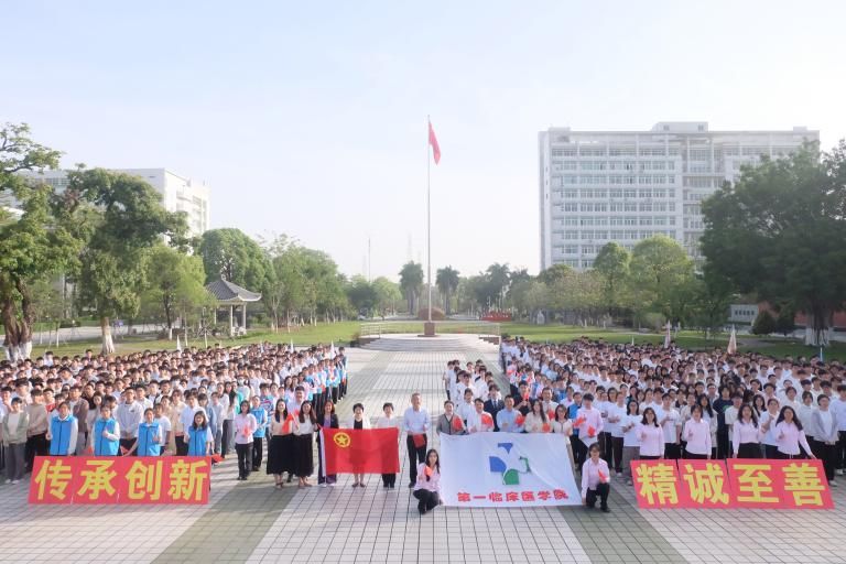 传承岐黄薪火,勇担时代使命。2025年4月14日早晨7点20分,广州中医药大学第一临床医学院在大学城校区升旗广场举行了“岐黄传薪续华章,青春逐梦启新航”主题升旗仪式。学院党委书记邝卫红、党委副书记郭文海、教学党总支书记陈雁、教育教学部部长龙泳伶、学工办全体辅导员与一院23、24级全体同学一同参与此次活动。