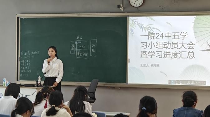 2025 年 5 月 14 日(周三)17:30,第一临床医学院24级中医学五年制学习小组在B 栋教学楼 508 教室举行学习小组第二期动员大会暨近期学习总结大会,辅导员邱敏老师及学习小组全体成员出席了本次会议。本次活动以“‘继往开来,精诚致远’—— 传承一期经验,共筑二期新篇”为主题,旨在全面总结过往经验,清晰明确未来方向,为即将开启的二期学习活动营造积极氛围、奠定良好开端。