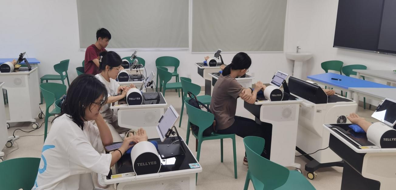 六名参赛选手从学院众多优秀学子中,历经多轮严格选拔脱颖而出,继而开启系统严苛的备赛之旅。清晨,当校园还沉浸在静谧之中,他们已开始背诵方剂、复习知识点;深夜,训练室的灯光下仍有他们反复练习针灸、推拿手法的身影。队员何芊桦在前往理论机考的路上被突如其来的倾盆大雨淋湿,当晚便发起了高烧。第二天的技能考场上,她强撑着不适,凭借顽强的意志和早已烂熟于心的技能,顺利完成各项考核。她说:“为了这一刻,大家准备了这么久,无论如何我都不能半途而废影响临技队。”