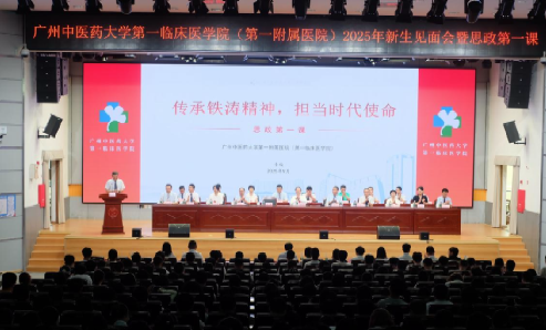 2025年9月15日,广州中医药大学第一临床医学院(第一附属医院)2025级新生见面会隆重举行。第一临床医学院党委副书记、院长李俊教授以“传承铁涛精神,担当时代使命”为主题,为830名新生带来了一堂深刻而富有启迪的“思政第一课”。