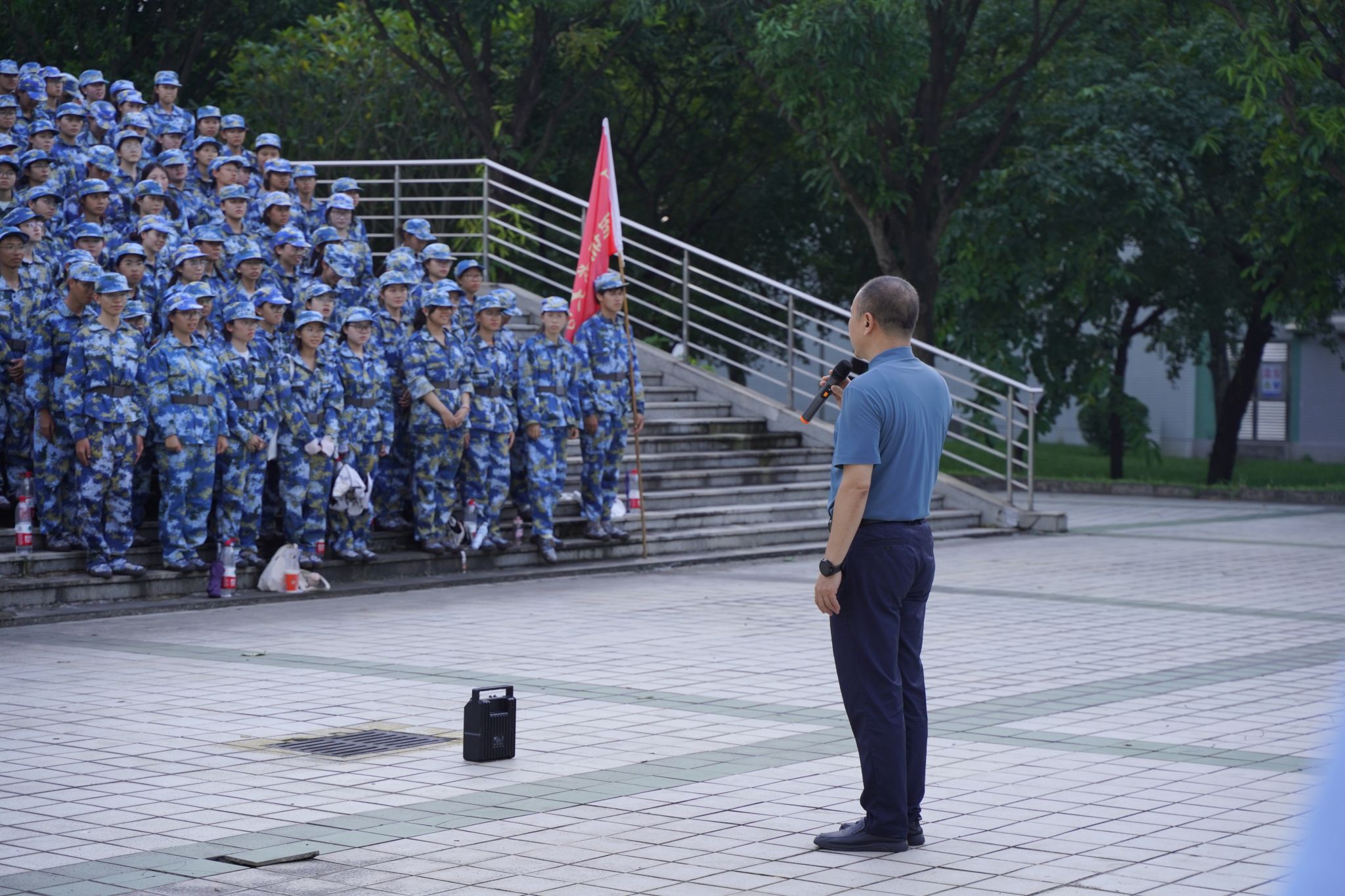 烈日之下,热情未减分毫;疲惫之间,精神愈发挺拔。9月22日-9月26日,学院举行了“青春共绘迷彩季,温暖训途慰问行”军训慰问活动和新生军训合唱比赛。学院党委副书记章遐义、教育教学部副部长周峰、学生工作办公室副主任陈小波携辅导员团队走进训练场,亲切问候教官与学生,并送上精心准备的慰问物资。一杯杯清凉饮品,一句句暖心鼓励,如秋日清泉,浸润心田。学子们笑容洋溢,温情在目光中流转,在无声中传递。