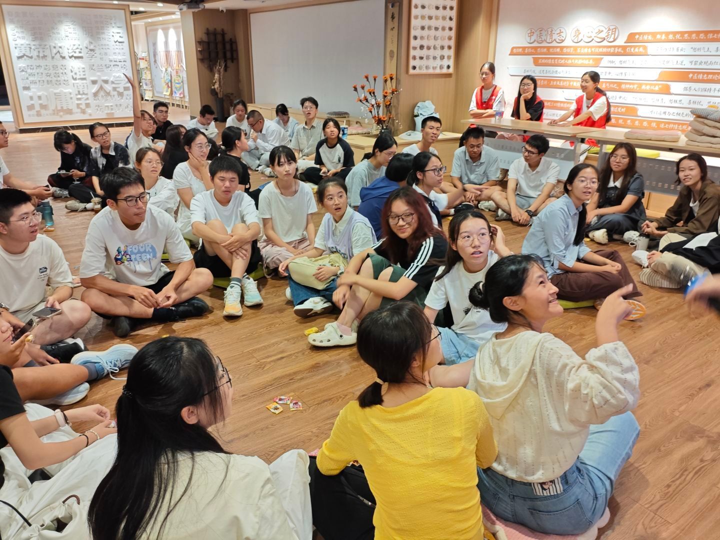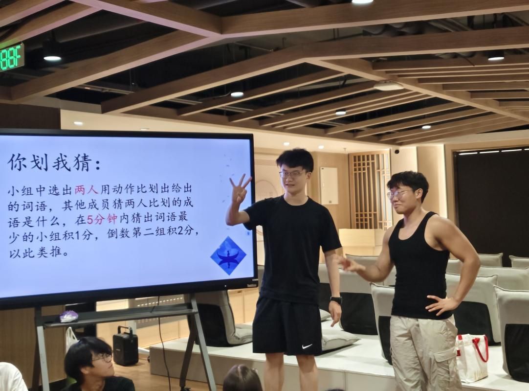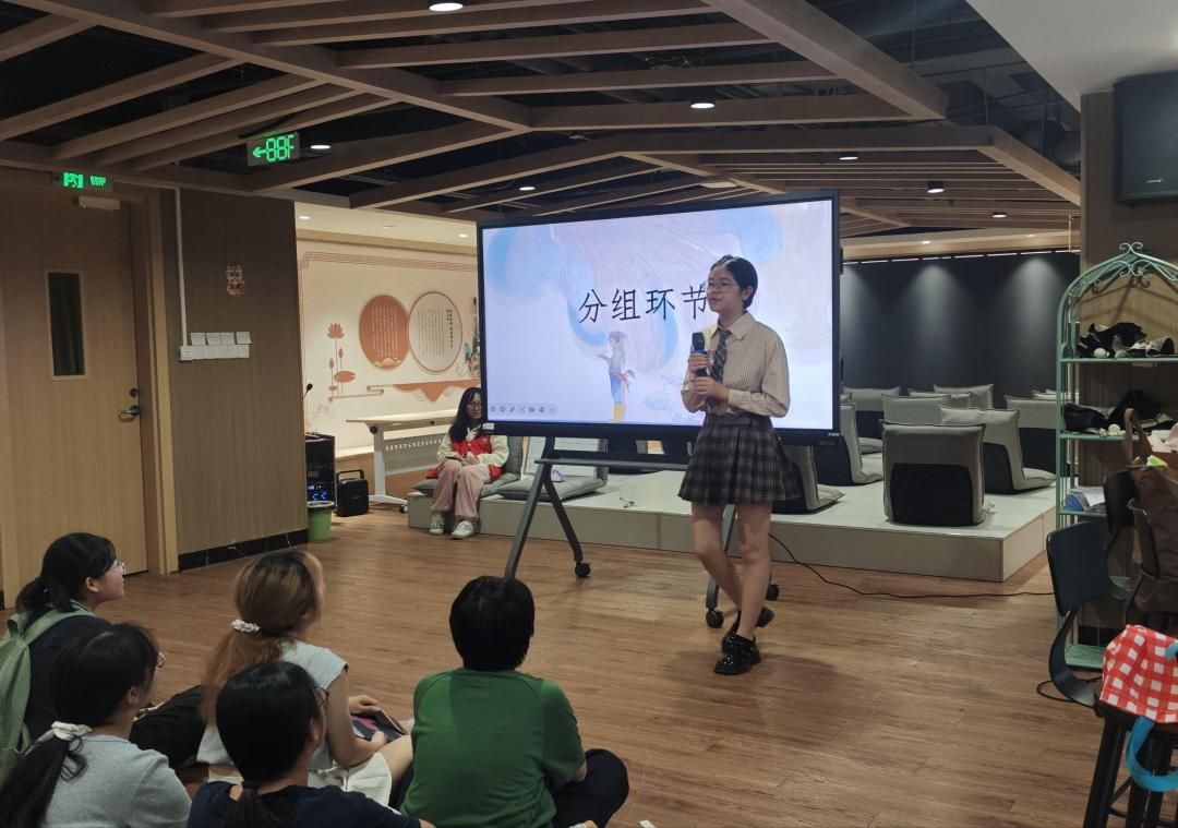 本次团辅选择在中国传统养心文化体验馆开展,将心理辅导与中国传统养心理念相结合,使新生在浸润式环境中自然互动,减轻初入大学的焦虑感。活动以主持人介绍活动意义、流程为开场,接着以轻松有趣的游戏环节开启活动旅程。第一个游戏“听歌识曲”逐渐点燃现场氛围。大家在欢快的音乐与紧张的抢答中,逐渐打破陌生感,现场笑声与欢呼声不断。紧接着的“你划我猜”环节,进一步增强了团队凝聚力。活动中,比划者夸张生动的动作、猜词者绞尽脑汁的思考,让同学们都沉浸在协作的乐趣中。