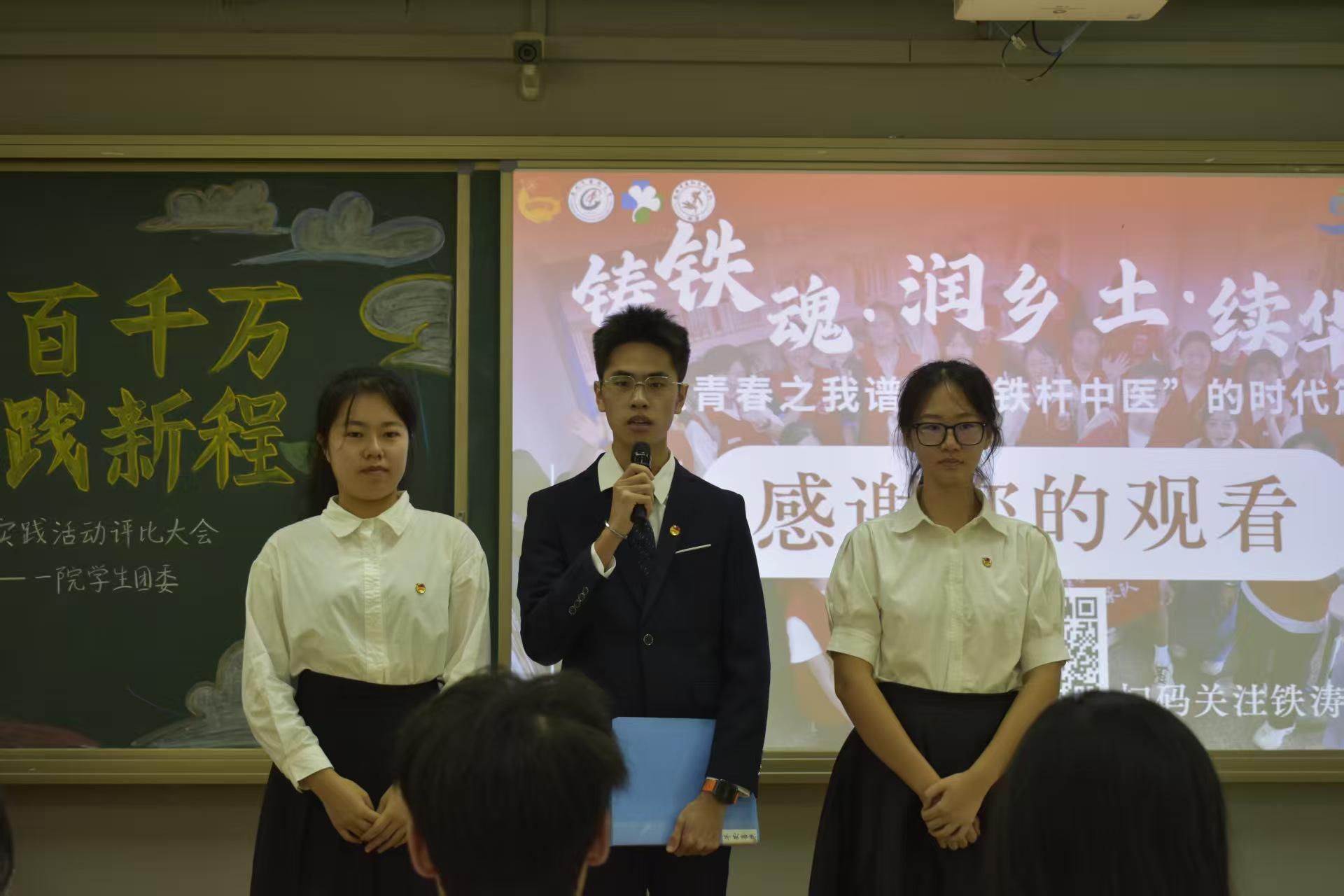 大会伊始,主持人以简洁而有力的开场辞宣告评比大会正式启动,并简要阐述了本次活动的宗旨、流程与评审标准。随后,各实践队伍依次登台,通过PPT讲解、视频展播等多种形式,围绕“青春聚力百千万,岐黄惠民践新程”的主题,系统汇报队伍的实践过程与丰硕成果,不仅涵盖义教、社会调研、关爱老人等传统社会实践活动,还创新性开展中医药集市活动、国家教育资助政策宣讲、邓铁涛铁杆中医红色精神宣讲、潮汕英歌舞学习、长者回忆录等特色活动。现场氛围庄重热烈,充分展现了一院学子扎实的专业基础、实践能力与服务社会的青春担当。