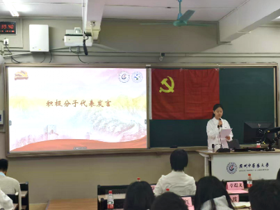2024级中医学专业赵懿卓作为学员代表发言。她表示,将珍惜本次培训机会,严守纪律、潜心学习、主动实践,努力提升理论素养和党性修养,以党员标准严格要求自己,争取早日成为一名合格的共产党员,为中医药事业传承创新和健康中国建设贡献青春力量。